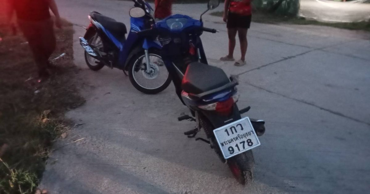 พ.ต.ต.กิตติโชค สมหมาย สว.(สอบสวน)พงส.เวรฯได้รับแจ้งจากกูภัยว่ามีอุบัติเหตุรถจักรยานยนต์เฉี่ยวชนกันกับรถจักรยานยนต์ที่บริเวณถนนห้าแยกบ้านสวัสดี ต.กฤษณา อ.ขุขันธ์ จ.ศรีสะเกษ ที่เกิดเหตุ มีผู้ได้รับบาดเจ็บและทรัพย์สินได้รับความเสียหาย จึงได้เดินทางไปตรวจที่เกิดเหตุ เมื่อไปถึงพบรถจักรยานยนต์ ยี่ห้อ ฮอนด้า เวฟ สีน้ำเงิน-ดำ ไม่ติดแผ่นป้ายทะเบียนล้มอยู่ที่เกิดเหตุ(ทะเบียน 1กส-3655 ศรีสะเกษ) ได้รับความเสียหายบริเวณท่อไอเสียข้างขวาไม่พบผู้ขับขี่ทราบว่ากู้ภัยนำตัวส่งโรงพยาบาลขุขันธ์ และพบรถจักรยานยนต์ ยี่ห้อ ฮอนด้า เวฟ สีน้ำเงิน-เทา ทะเบียน 1กว-9178 พระนครศรีอยุธยา ล้มอยู่ที่เกิดเหตุ ไม่พบผู้ขับขี่ทราบว่ากู้ภัยนำตัวส่งโรงพยาบาลขุขันธ์ จึงได้จัดทำภาพถ่ายแผนที่ที่เกิดเหตุ และจากการสอบถามญาติเบื้องต้นทราบว่านายกฤติพงษ์ ขันทอง อายุ 16 ปี บ้านเลขที่126 หมู่ที่ 4 ต.กฤษณา อ.ขุขันธ์ จ.ศรีสะเกษ เป็นผู้ขับขี่รถจักรยานยนต์รถจักรยานยนต์ ยี่ห้อ ฮอนด้า เวฟ สีน้ำเงิน-ดำ ไม่ติดแผ่นป้ายทะเบียนล้มอยู่ที่เกิดเหตุ(ทะเบียน 1กส-3655 ศรีสะเกษ)แล่นมาตามถนนที่เกิดเหตุทางด้านทิศตะวันตกเมื่อมาถึงบริเวณทางร่วมทางแยกห่าแยกได้ขับรถเลี้ยวขวา มาคนเดียว และมีด,ญ.ธิติรัตน์ กัลยา อายุ 14 ปี บ้านเลขที่126 หมู่ที่ 4 ต.กฤษณา อ.ขุขันธ์ จ.ศรีสะเกษ รถจักรยานยนต์ ยี่ห้อ ฮอนด้า เวฟ สีน้ำเงิน-เทา คันหมายเลขทะเบียน 1กว-9178 พระนครศรีอยุธยา ขับออกมาจากบ้านแล่นมาตามถนนที่เกิดเหตุ คนเดียว เมื่อมาถึงทางร่วมทางแยกห้าแยกได้เฉี่ยวชนกันกับบริเวณขอบทางด้านซ้ายกับรถจักรยานยนต์คีนที่นายกฤติพงษ์ ขันทอง ขับขี่มาจนเป็นเหตุให้นายกฤติพงษ์ ขันทอง และด.ญ.ธิติรัตน์ กัลยา ทั้งสองคนได้รับบาดเจ็บ และรถจักรยานยนต์ทั้งสองคันได้รับความเสียหาย และนำรถคู่กรณีทั้งสองคันมาเก็บรักษาไว้ทึ่สภ.จะกง เพื่อตรวจสภาพ